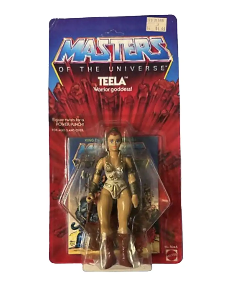 Teela, the fierce warrior goddess of Eternia, arrived midway through the original 1982 wave, representing a pivotal shift in MOTU’s character lineup. Originally a combination of two characters—the warrior woman and the sorceress—Teela came with a red cobra-themed headdress, serpent staff, ornate shield, and mini-comic. Though Mattel was hesitant about female figures in a boy-targeted line, Teela’s inclusion became foundational, paving the way for more women in the MOTU universe.